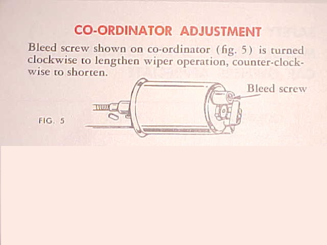 Bleed screw shown on co-ordinator (fig 5) is turned clockwise to LENGTHEN wiper operation, counter clockwise to shorten the running time.